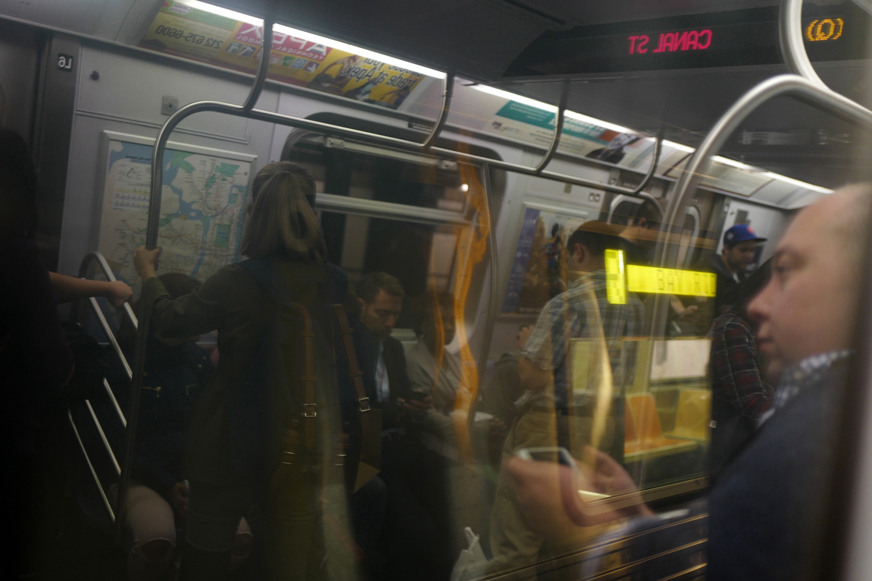 La couleur joue enfin un rôle structurant. Les vitrages teintés, les néons, les impressions publicitaires ou les reflets du ciel produisent des dominantes chromatiques qui recomposent la scène et unifient des éléments hétérogènes.